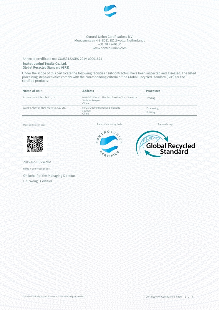 2019 GRS সার্টিফিকেশন